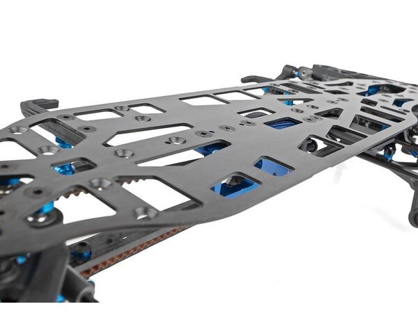 TC8 Stahl-Chassis: Senkt den Schwerpunkt und optimiert den Chassisflex für griffige Oberflächen.
