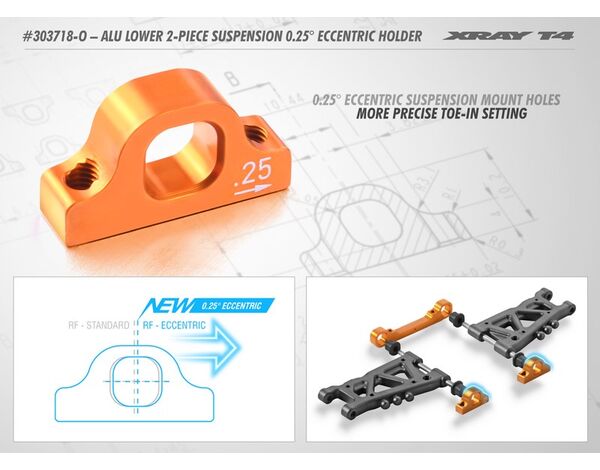 303718-O TEAM XRAY ALU Schwingenhalter 2-teilig hinten unten FRONT 0.25 EXZENTRISCH20.2