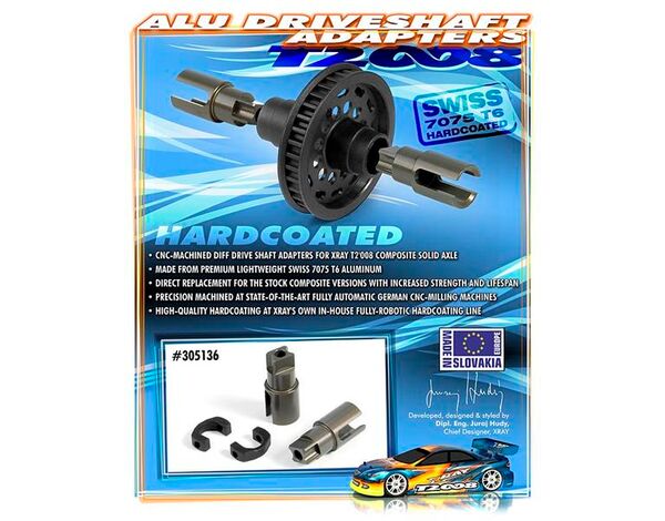 305136 XRAY ALU SOLID AXLE DRIVESHAFT ADAPTERS - HARD COATED (2)