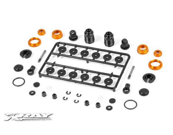 These unique black hardcoated aluminum shocks are loaded with all of the features needed for today’s racing. When you need ultra-fine shocks for your lightweight electric touring car, the new XRAY shocks have you covered. Orange colour.