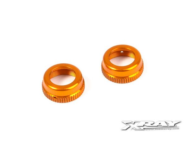 Machined alu upper shock cap for T4 SLP aluminum shock absorbers. Orange colour. Set of 2.