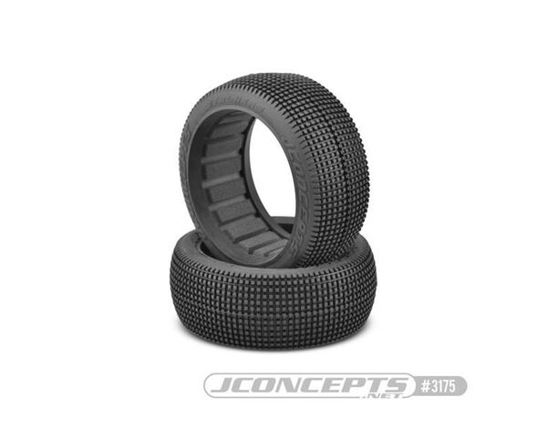 The stacked row configuration and simple connected pins offer massive forward acceleration. The aligned rows allow some surface drift making the tires forgiving in sand and bumpy track sections. The outside pin has been clipped to help drive-ability and ease the initial turn-in drivers often have concern for. The JConcepts tires include the Dirt-Tech closed cell inserts made famous by their gray color and durability. The package is complete with re-sealable, zip-top packaging and backed with JConcepts customer support and racing heritage.