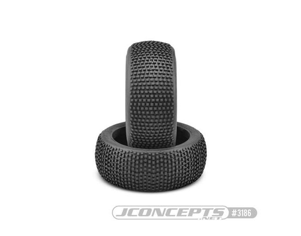 3186-R2 JConcepts Kosmos - Red2 compound - (fits 1/8th buggy) 1 Paar Reifen mit Einlagen für 1/8 Buggy R2 Medium Soft Compound, long wear When David Ronnefalk joined the JConcepts Racing team, he had a recommendation. “Let’s develop a tire for the Euro drivers where the tracks are more dry, rutted and dusty.” The team set off on a mission by evaluating JC’s past and present tread patterns to arrive at a new build. Tires such as the Hybrid, Chasers and Stackers, already in the line-up, have all served well and have won major events; however, Kosmos has it all. Starting with a clean shape and carcass, the design team took to a rectangular based pin which has the forward bite muscle to boost a 1/8th buggy. The staggered rows create a unique zig/zag affect at certain views giving it a 3D mind puzzle affect. In fact, the design is 4 rows deep of off-set and staggered sections when compared to some traditional tires which rely on 2. JConcepts has connected several sections of