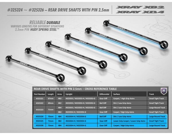 325325 TEAM XRAY Antriebswelle hinten 72MM mit 2.5MM Stift - HUDY SPRING STEEL™