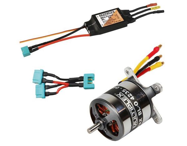 332610 Multiplex Antriebssatz FunCub XL Perfekt abgestimmter Antriebssatz für FunCub XL. Gerade bei der Antriebsauslegung kommt es auf jeden einzelnen Baustein an. Ein schwacher Akku, eine falsche Luftschraube, ein nicht exakt passender Motor und die Leistung eines Modells geht in den „Keller“! MULTIPLEX-Antriebssätze sind nach langen Erprobungsphasen optimal ausgelegt und garantieren maximalen Flugspaß! Ihre Vorteile: Das Zusammenstellen einzelner Komponenten entfällt. Langwierige Anpassungen und Erprobungen sind nicht erforderlich. Alle benötigten Teile sind enthalten, Lötarbeiten sind nicht notwendig. Mit den MULTIPLEX-Antriebssätzen kommen Sie schnell zum gewünschten Erfolg und tollen Flugerlebnissen. MULTIPLEX-Antriebssätze bestehen aus folgenden Qualitätskomponenten: • Motoren • Regler • Optimal angepasste Luftschrauben (sofern im Lieferumfang enthalten) • Durchgängiges Steckersystem, fertig verlötet Lieferumfang Regler MULTIcont BL-60 SD Motor P