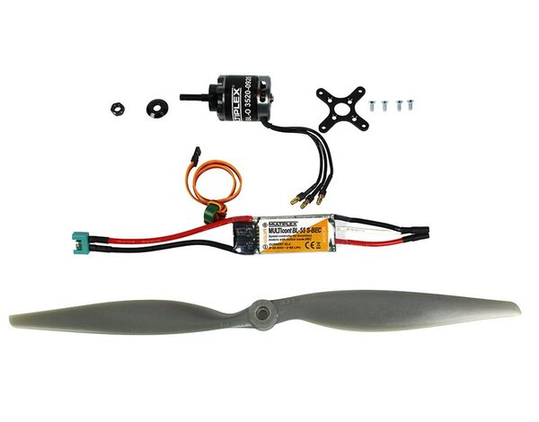 332673 Multiplex Antriebssatz Extra 330 SC Antriebssatz für die EXTRA 330SC Mit diesem Antriebssatz wird die EXTRA 330SC zum absolutes unlimited 3D-Freestylemonster. Gerade bei der Antriebsauslegung kommt es auf jeden einzelnen Baustein an. Eine falsche Luftschraube, ein nicht exakt passender Motor und die Leistung eines Modells geht in den „Keller“! MULTIPLEX-Antriebssätze sind nach langen Erprobungsphasen optimal ausgelegt und garantieren maximalen Flugspaß! Ihre Vorteile: Das Zusammenstellen einzelner Komponenten entfällt. Langwierige Anpassungen und Erprobungen sind nicht erforderlich. Alle benötigten Teile sind enthalten, Lötarbeiten sind nicht notwendig. Mit den MULTIPLEX-Antriebssätzen kommen Sie schnell zum gewünschten Erfolg und tollen Flugerlebnissen. MULTIPLEX-Antriebssätze bestehen aus folgenden Qualitätskomponenten: • Motoren • Regler • Optimal angepasste Luftschrauben (sofern im Lieferumfang enthalten) • Durchgängiges Steckersystem, fertig ve