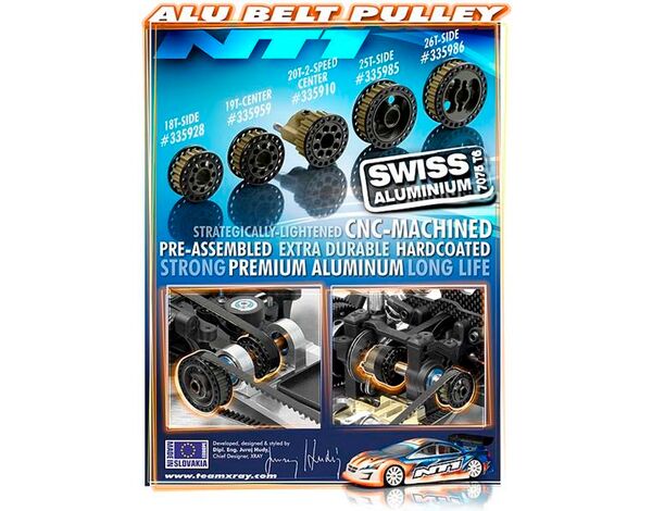 335986 XRAY ALU BELT PULLEY 26T - MID-SIDE - SET
