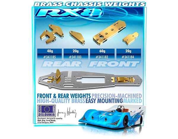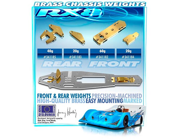 341182 XRAY RX8 BRASS CHASSIS WEIGHT FRONT 60g
