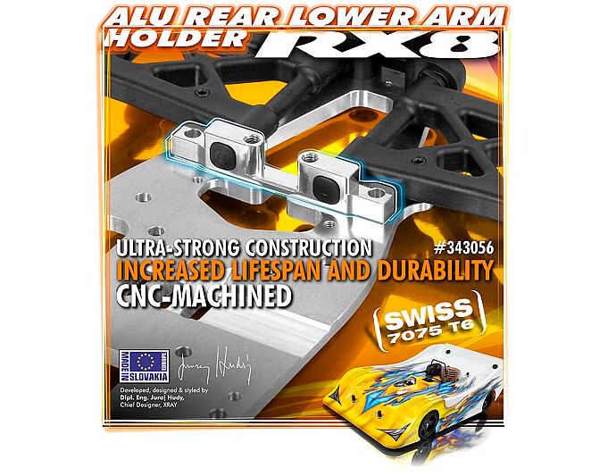 343056 XRAY RX8 ALU REAR LOWER SUSP. ARM HOLDER 7075 T6