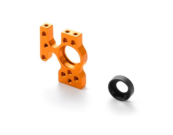 Aluminum brake stand bulkhead CNC-machined from premium Swiss 7075 T6 aluminum. The stand is separated from the rear bulkheads to give proper flex and maximum traction. The ball-bearing is installed in a composite bushing to eliminate vibration transfer from the engine. Orange color; color may slightly vary between products.
