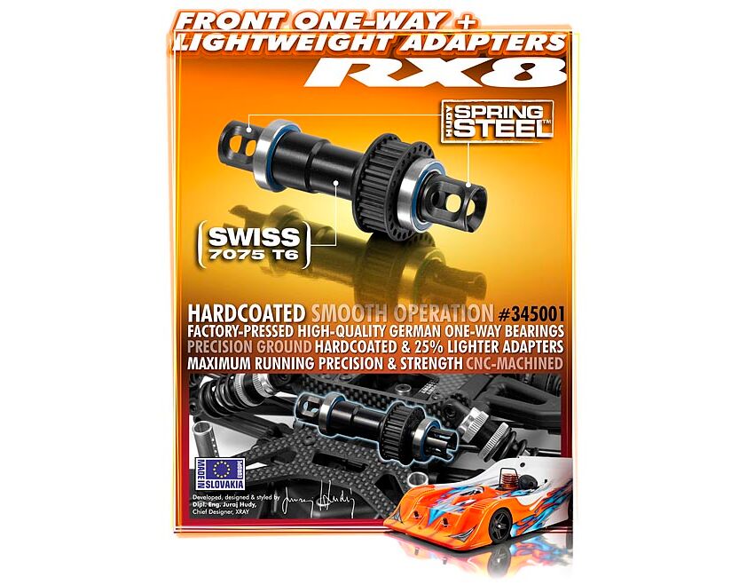 345011 XRAY RX8 FRONT ONE-WAY AXLE - BLACK COATED