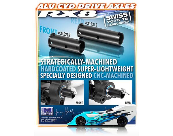 345212 XRAY RX8 ALU FRONT CVD DRIVE AXLE T6 - HARD COATED