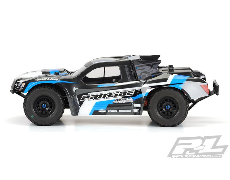 All-new features to the Fusion include roof vents to make it the best jumping body available and kick-ups on the roof and rear fenders to keep you glued to the surface making your SC truck easier to drive. Initial feedback from the Pro-Line Race Team drivers who have tested the Fusion say that it’s the best body they have ever used! Jump into the future with Pro-Line’s new Flo-Tek Fusion Short Course body!