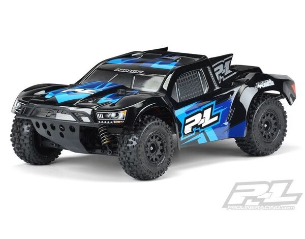 This is a Pre-Cut Flo-Tek Fusion Tough-Color Black SC Body. Pro-Line is proud to release the Flo-Tek Fusion made from completely black polycarbonate material with detailed wrap decals and Pre-Cut to get you going even faster! Just install your decals and put in your body post holes and go! The Fusion wrap decals are pre-cut and feature Pro-Line Blue speed lines that will make your truck stand out from the rest. The Tough-Color polycarbonate is made from black material, so you never have to worry about paint peeling or chipping off. Realistic window stickers are also included!