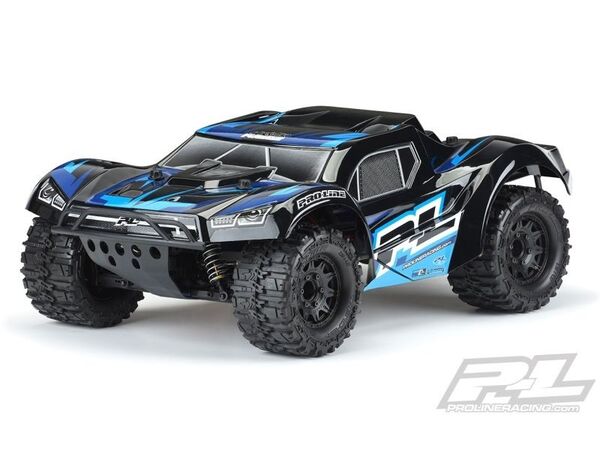 This is a Pre-Cut Flo-Tek Fusion Tough-Color Black SC Body. Pro-Line is proud to release the Flo-Tek Fusion made from completely black polycarbonate material with detailed wrap decals and Pre-Cut to get you going even faster! Just install your decals and put in your body post holes and go! The Fusion wrap decals are pre-cut and feature Pro-Line Blue speed lines that will make your truck stand out from the rest. The Tough-Color polycarbonate is made from black material, so you never have to worry about paint peeling or chipping off. Realistic window stickers are also included!