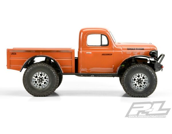 This is a 1946 Dodge Power Wagon Clear Body for Crawlers. Pro-Line is proud to introduce the 1946 Dodge Power Wagon body for Scale Crawlers! This First Gen Power Wagon body style comes as 2 pieces (Cab and Bed) for an ultra-realistic look that stays true to the original military inspired 4x4 truck that civilians could buy. The 1946 Power Wagon features a huge, menacing flat front grill with large flat panel style fender flares just like the real truck. The body includes textured rocker panels, realistic undercuts and separate round headlights designed to allow for real working LED lights, all of which complete the look of this iconic truck. Order your body now!