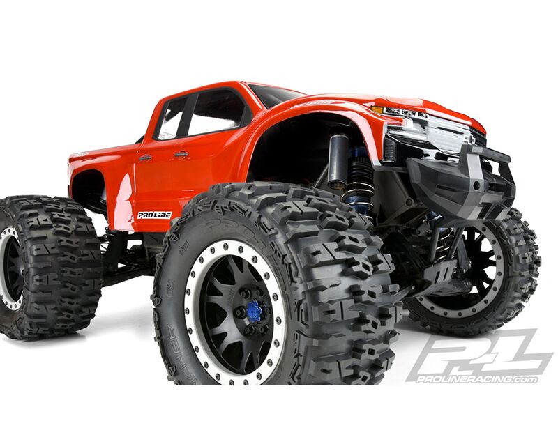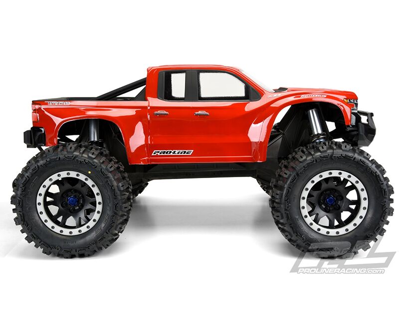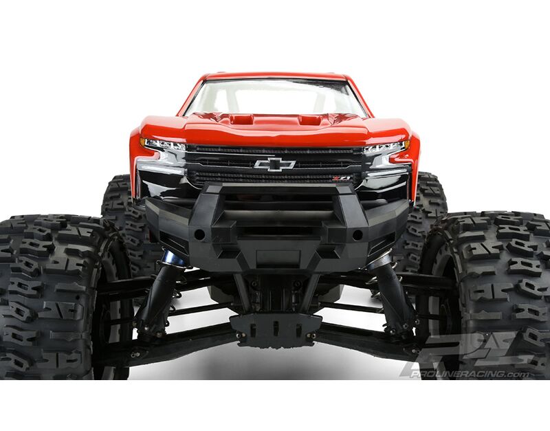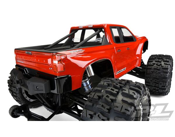 This is a pre-cut 2019 Chevy® Silverado™ Clear Body for X-MAXX®. Pro-Line now has the ultimate licensed Chevy® body specifically made for the X-MAXX® – the 2019 Chevy® Silverado™ Z71 Trail Boss! The just released full size 2019 Chevy® Silverado™ is extremely popular and has a distinct look that will separate your truck from the rest. Pro-Line has included all the aggressive scale detail into the body and sticker sheet for a highly detailed replica and it comes Pre-Cut to get you going faster. This body completely transforms your X-MAXX® into an even crazier Bash Machine and allows you to add a custom paint job! Give your X-MAXX® the tough off-road look it deserves with Pro-Line's new Chevy® Silverado™ body!