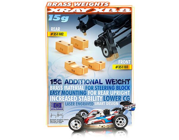 351181 Xray XB8 2014 Messing Gewichte 15G zu Achsschenkel vorne (2)