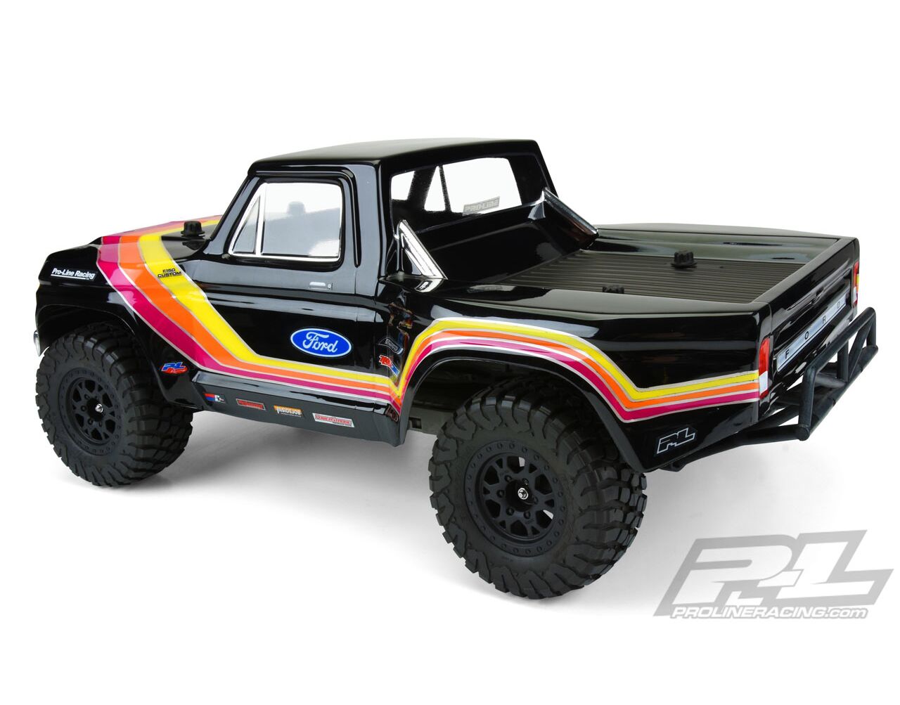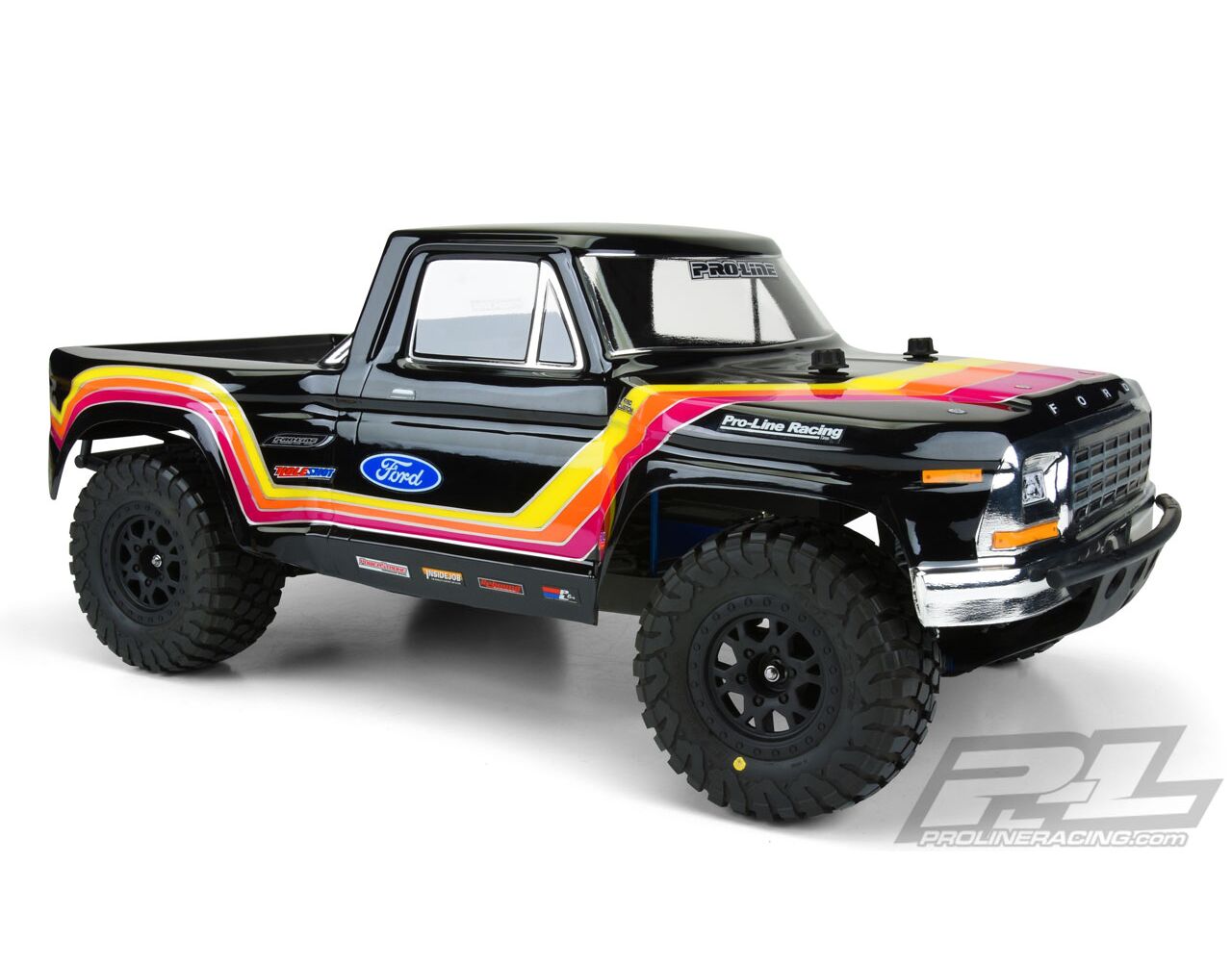 This is a 1979 Ford® F-150 Race Truck Clear Body for Short Course. The 1979 Ford® F-150 is a classic vintage truck that has recently become a popular platform for building full-size pre-runners. Pro-Line is proud to bring the nostalgic and majestic body lines of the 1979 Ford® F-150 to your Short Course Truck complete with race styling! This body features wide fender flares to represent the aggressive fiberglass bulges found on custom race trucks along with carefully sculpted rectangular head lights and a bold front grill. Transform the look of your Short Course Truck with the 1979 Ford® F-150 Race Truck Body from Pro-Line!