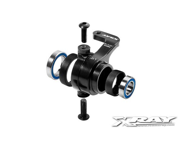 Authentic XRAY right-side alu steering block with 10° kingpin for XB9 is CNC-machined from premium Swiss 7075 T6 aluminum, hardcoated for extra durability and long life. New kingpin steering block with 10° inclination for increased in-corner steering. Recommended for technical tracks where in-corner steering is needed. This new steering block is also 1mm narrower which helps increase the steering. Using the standard wheel hexes, offset is -1mm compared to old steering blocks with standard wheel hexes. Ultra-strong construction provides very long life and durability in even the most extreme racing conditions. Use with 352268 left alu 10° kingpin steering block.