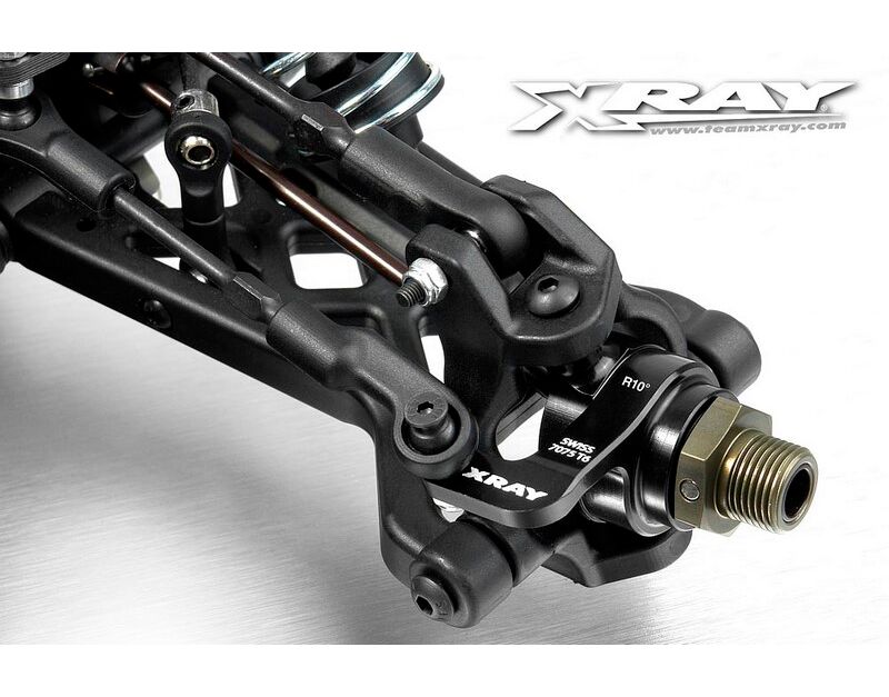 Authentic XRAY left-side alu steering block with 10° kingpin for XB9 is CNC-machined from premium Swiss 7075 T6 aluminum, hardcoated for extra durability and long life. New kingpin steering block with 10° inclination for increased in-corner steering. Recommended for technical tracks where in-corner steering is needed. This new steering block is also 1mm narrower which helps increase the steering. Using the standard wheel hexes, offset is -1mm compared to old steering blocks with standard wheel hexes. Ultra-strong construction provides very long life and durability in even the most extreme racing conditions. Use with 352258 right alu 10° kingpin steering block.