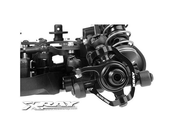 Lightweight block features the new 3 roll center positions which allow for very fast and comfortable roll center adjustment. The preset 12° caster block is integrated and non-adjustable. Combined with the XB9 front kick-up of 10° this block gives a total caster angle of 22° for increased steering and precision. Includes XRAY composite bushings for super-precise and smooth steering action. Laser-engraved with XRAY registered logo for authenticity, caster value, and ‘R’ symbol for quick and easy identification.