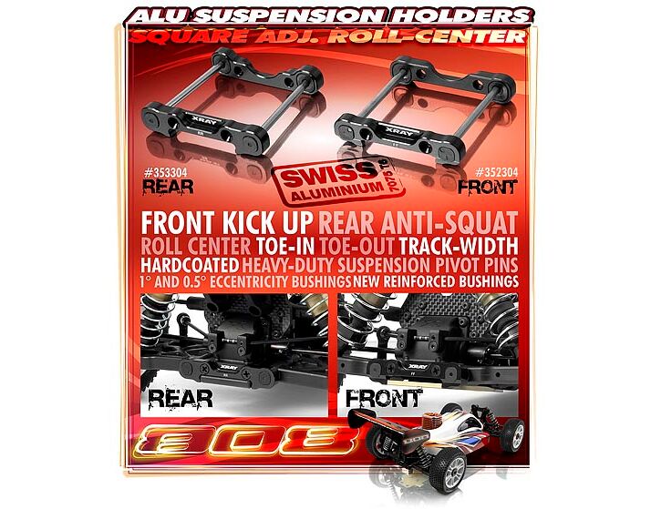 353304 XRAY XB808 ALU REAR LOWER SUSP. HOLDERS SET- SQUARE ADJ. ROLL-CENTER