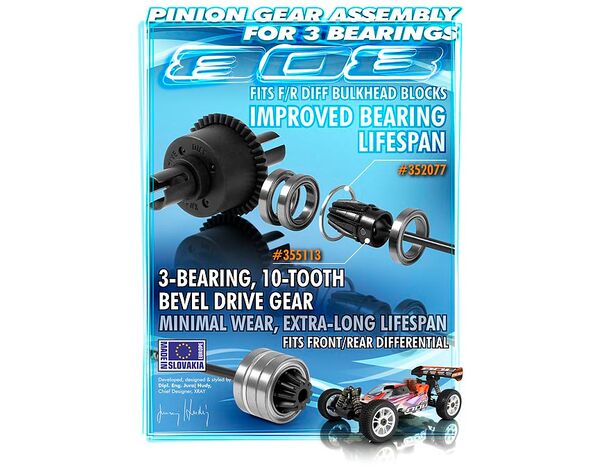 355113 XRAY XB808 PINION GEAR 10T FOR 3 BEARINGS