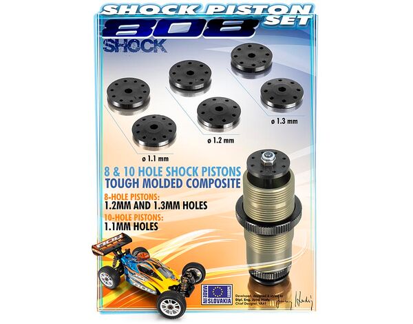 358034 XRAY XB808 SHOCK PISTON SET 8-HOLE (1.2; 1.3) 10-H. (1.1MM)