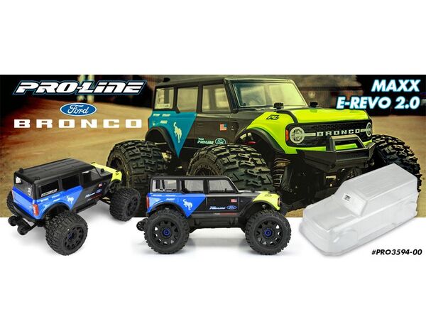 The legendary Bronco has returned with its unmistakable retro-modern styling and unmatched offroad performance, and now you can deck out your MAXX® or E-REVO® 2.0 in scale style. Pro-Line has included all the detail you would expect in the body and sticker sheet, allowing you to completely transform the look of your truck. The 1-piece Bronco body comes clear, so you can customize the look of your truck in any way you desire! If you are a Ford® fan this body is a must-have for your Monster Truck.