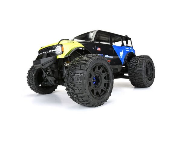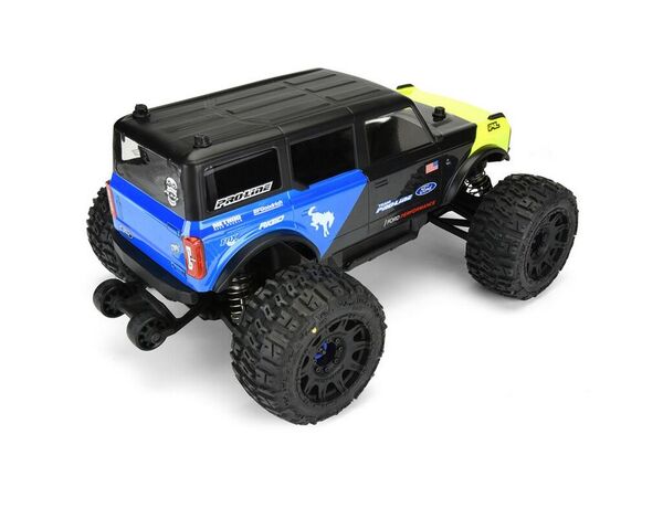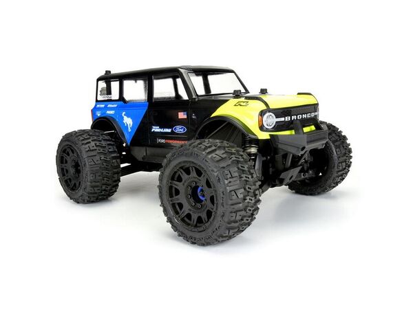 This is a 2021 Ford® Bronco Clear Body. Calling all blue-oval fans! Pro-Line is proud to release the Ford® Bronco body for your 1/8 Monster Truck.