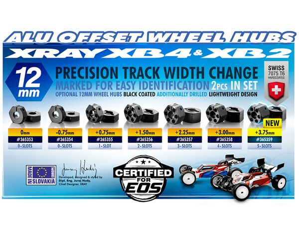 365359 Team Xray ALU Radadapter 12MM - OFFSET "+3.75MM" (2)