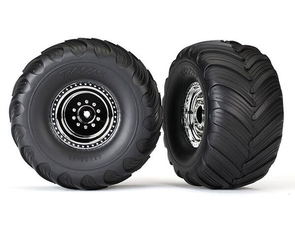 3665X Traxxas Tires / wheels assembled glued (chrome wheels Terra Groove dual profile tires, foam inserts) (nitro rear/ electric front) (2)
