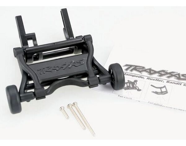The patented Traxxas adjustable wheelie bar features four-position adjustment to control the height of your wheelies. Durable composite nylon construction offers an extra level of protection for the motor and transmission case. The wheelie bar comes pre-assembled and ready to mount with the included screws. Optional aluminum wheels with rubber tires 5186 or 5186A) provide extra style and increased performance (sold separately).