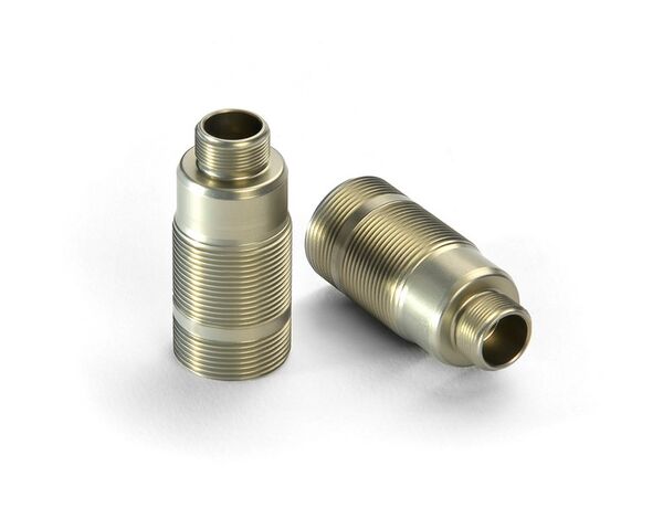 Machined hardcoated alu front shock bodies. Shorter than standard shock bodies to match lower front shock tower. Each aluminum shock body is CNC-machined from exclusive Swiss 7075 T6 aluminum – ensuring maximum strength and rigidity – using the world’s most precise German long turn CNC machine. All parts are rigorously inspected during our multi-step quality control process.