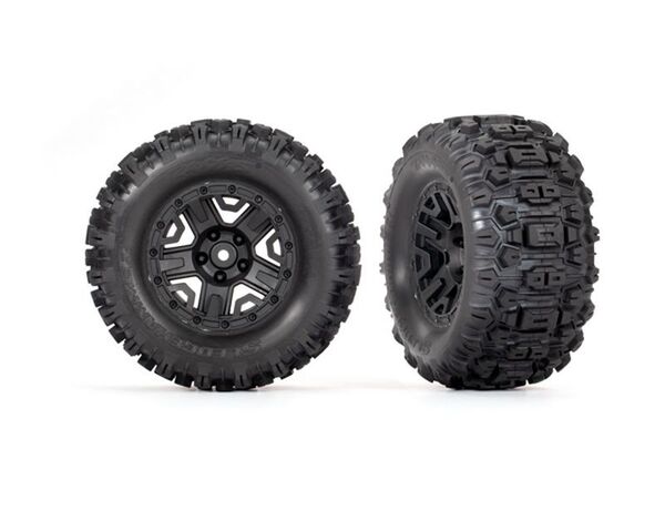 Tires & wheels, assembled, glued (black 2.8" wheels, Sledgehammer® tires, foam inserts) (electric rear) (2) (TSM® rated)