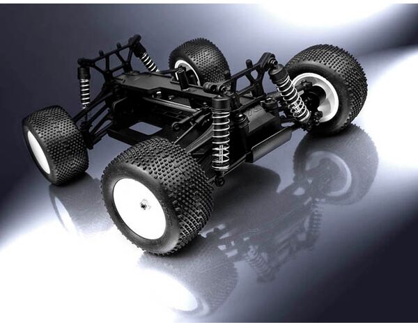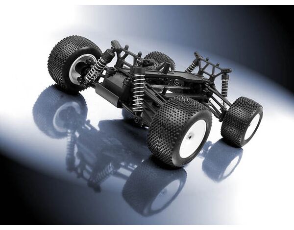 With a simple Monster conversion kit you can make this big little truck even bigger. The unique well thought out design allows the addition of four more oil filled shocks, (8 in total). 30% larger tires with a traditional monster tread pattern that helps you crush and climb all that dares to challenge the M18T.