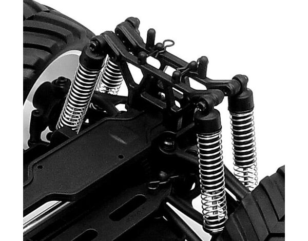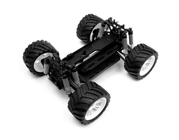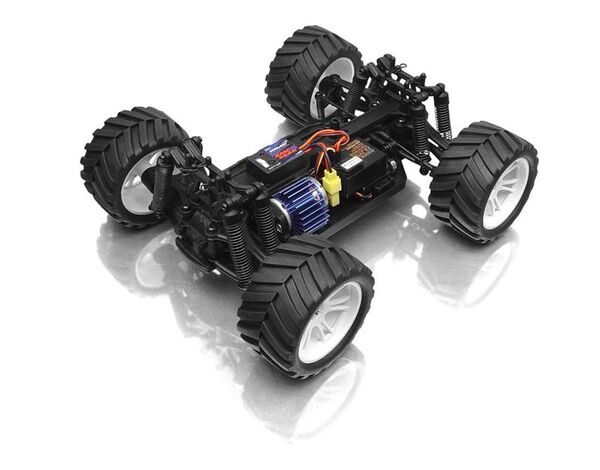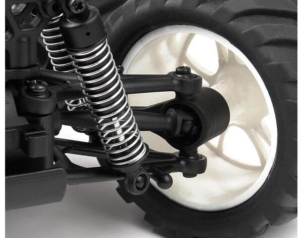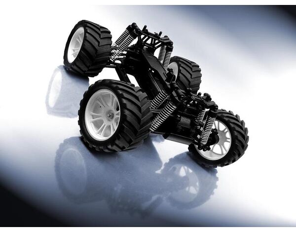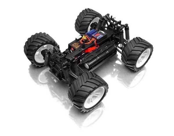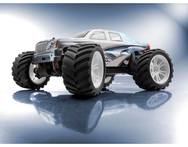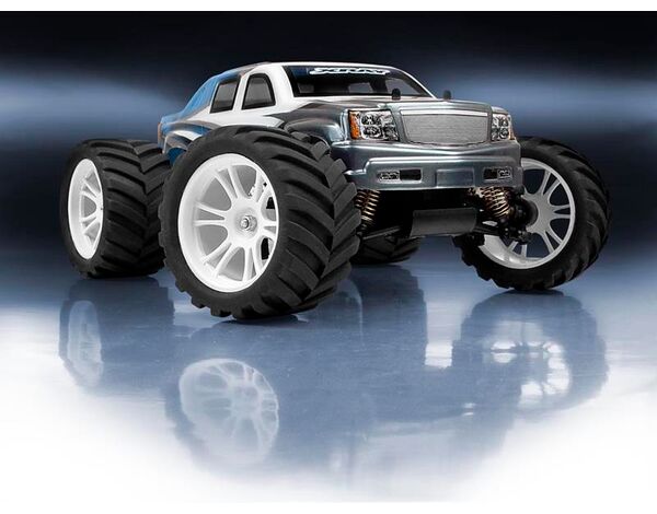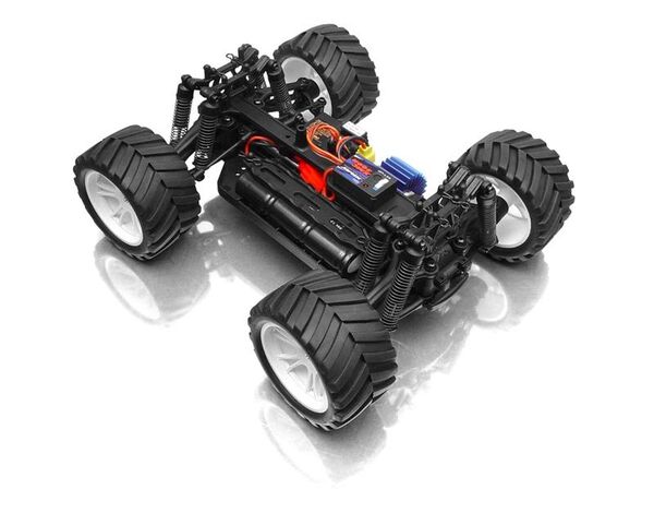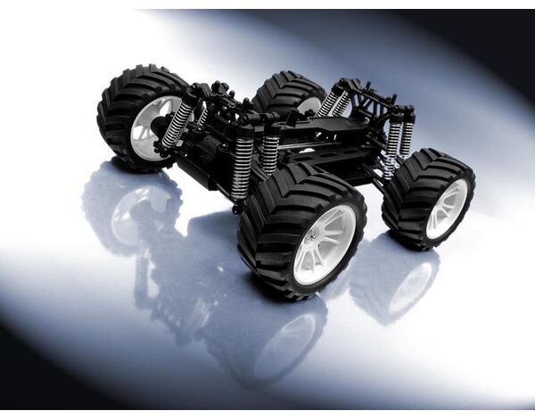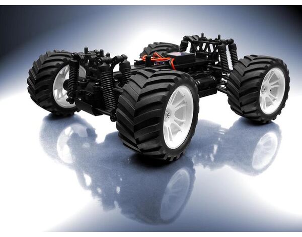 The unique well thought out design uses 8 oil filled shocks for increased control. 30% larger tires than standard truck tires with a traditional monster tread pattern that helps you crush and climb all that dares to challenge the M18MT.