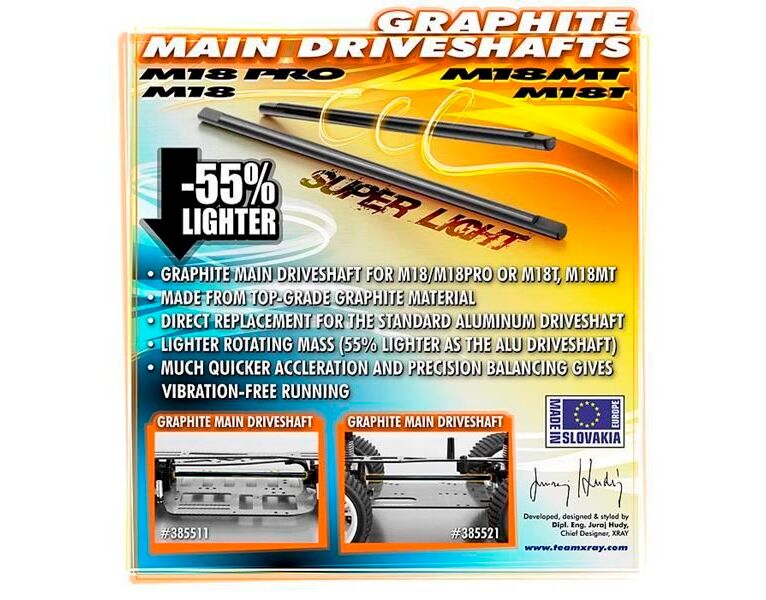385511 XRAY GRAPHITE MAIN DRIVESHAFT M18, M18PRO