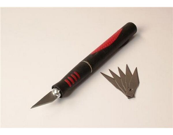 Skalpell für präzise Schneidarbeiten beim Modellbau. Inklusive 5 Ersatzklingen.