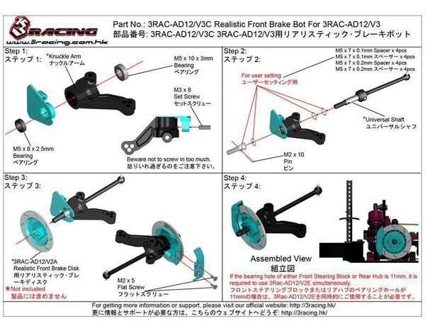 Bei 5x11mm Lager muss das Spacerset 3RAC-AD12/V2E 10x11x4mm Spacer für Bremsscheiben verwendet werden.