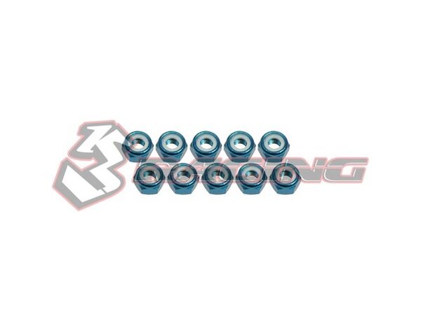 3RAC-N40/LB 3Racing 4mm Aluminum Lock Nuts (10 Pcs) - Light Blue