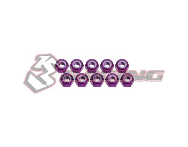 3RAC-N40/PU 3Racing 4mm Aluminum Lock Nuts (10 Pcs) - Purple