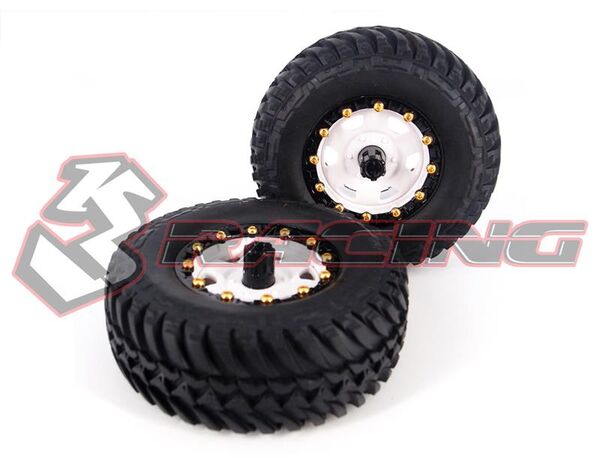 The beadlock rims included golden screws to improve the appearance of the car. High traction realistic rubber tires, features huge and deep lug provides high levels of traction in all off-road conditions.