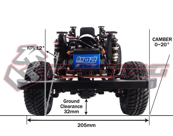 EX REAL comes with 12°Kingpin inclination makes steering becomes smoother. Adding adjustable 0~20° camber to level the axle to maximum the car performance in difference terrains.