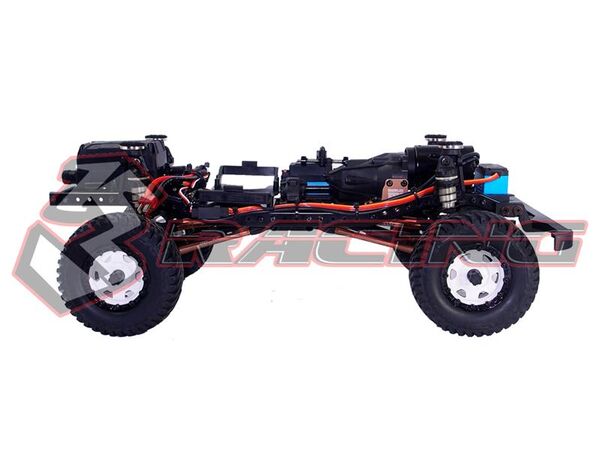 EX REAL is a high performance with high level of realistic detail crawler. The 1.4mm thick C-Channel metal frame with whole kit M7 metal linkages improve the vehicle strength and durability. The front motor & 2 speed gearbox setup follows the real crawler design, so the CG is at the front for better accelerating traction. Besides, it keeps the space for user to do the preferring interior designs. The metal bevel gear with metal solid axle, knuckes and upper linkage create significant ground clearance and greater exploring ability. The whole new 75mm aluminum oil damper allows more oil volume to provide a better shock absorbency. EX REAL includes all the refined adjustable settings: wheelbase, camber and battery tray for the best performance in difference terrains. Also with the stealth body mount and realistic front and rear bumper needed to say EX REAL is a high price-performance ratio realistic crawler which makes you have the best realistic crawler experience.