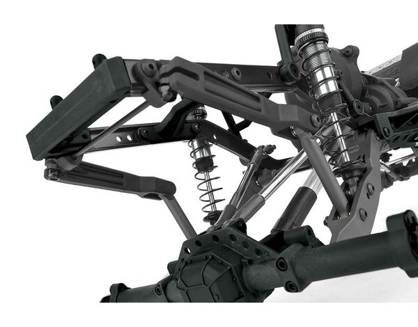Was zeichnet den Enduro Ecto Trail Truck aus? Die brandneue Gatekeeper Suspension (GKS?) Radaufhängung! Bei diesem Aufhängungspaket werden Längslenker verwendet, an denen die Stoßdämpfer weiter vorne montiert werden, wodurch sich mehr Spielraum bei der Stoßdämpferabstimmung ergibt und eine bessere Gewichtsverteilung erreicht wird. In Kombination mit einem Stabilisator kann das Fahrwerk durch Verwendung dieser Längslenker beim Bezwingen der Felsen gleichmäßiger arbeiten, was für ein stabiles Fahrverhalten sorgt. Der Panhardstab wird mit einem einstellbaren Aluminiumhalter fest am Leiterrahmen montiert, um die Baugruppe zu versteifen und damit die Zuverlässigkeit und das Ansprechverhalten der Lenkung des Enduro Ecto zu verbessern. Unsere Dämpferbefestigungseinsätze bieten mehrere Montagemöglichkeiten, wodurch das Fahrwerk exakt an die jeweiligen Verhältnisse angepasst werden können, sei es durch Verschieben der Dämpfer nach oben, unten, vorn oder hinten.