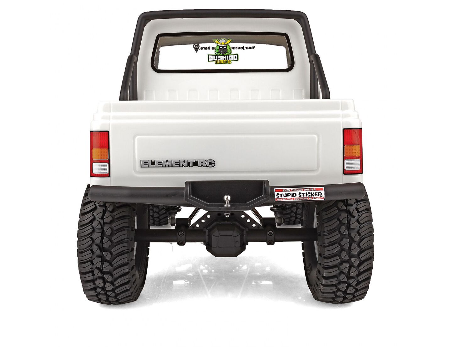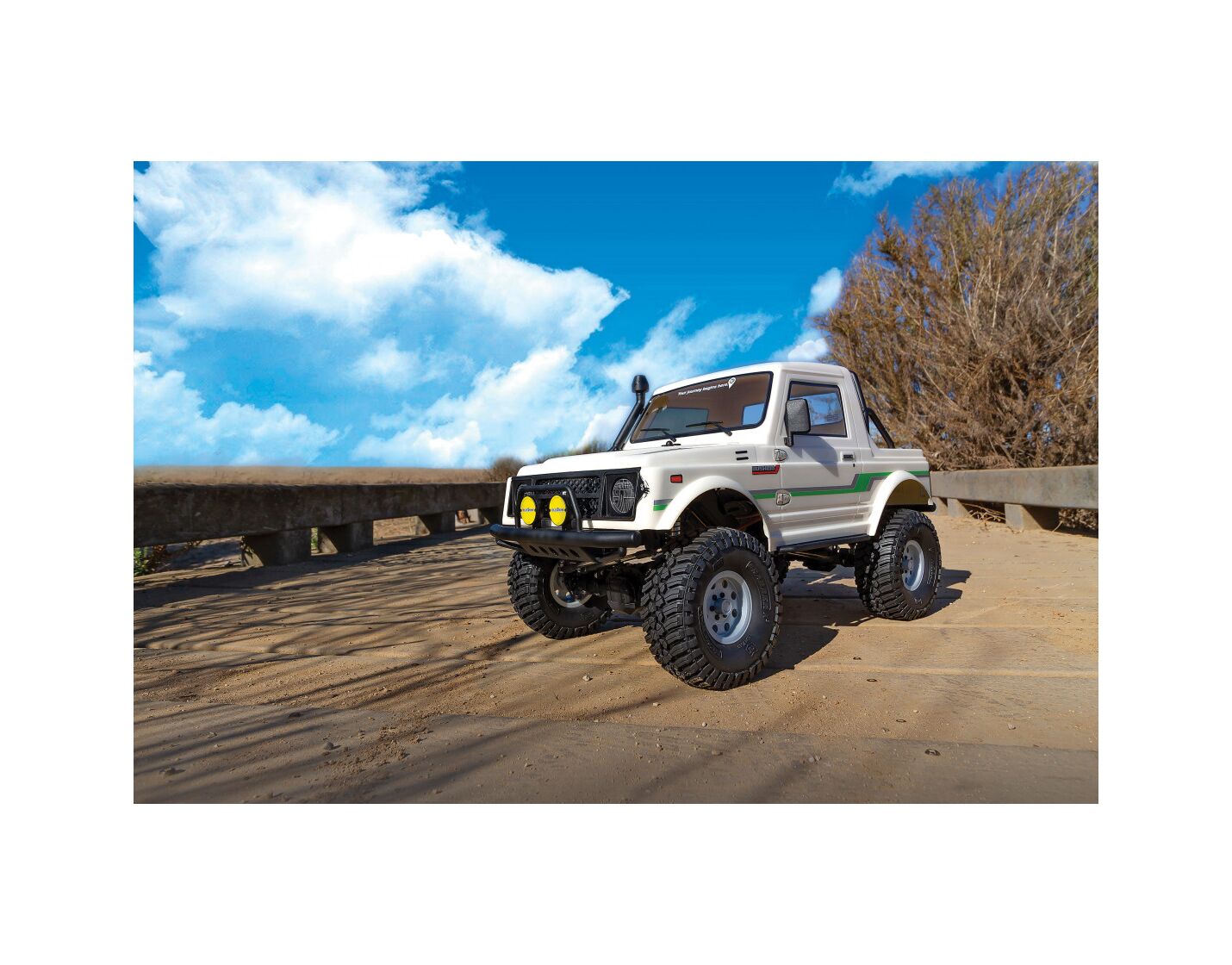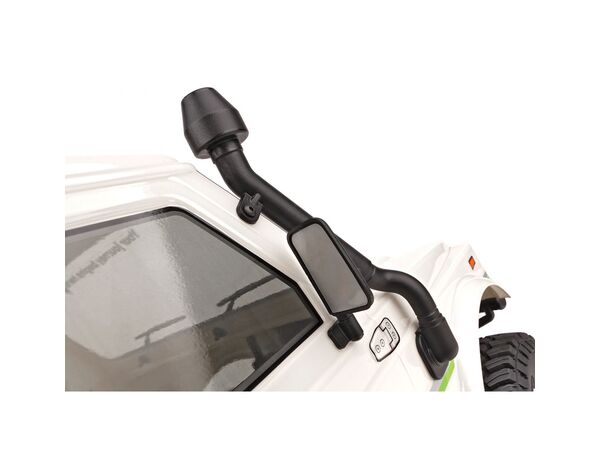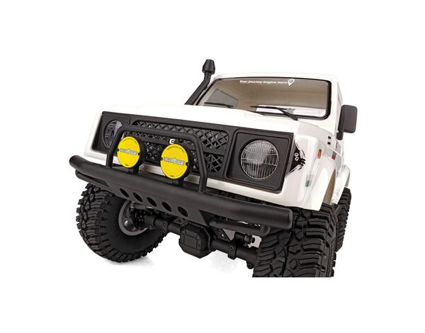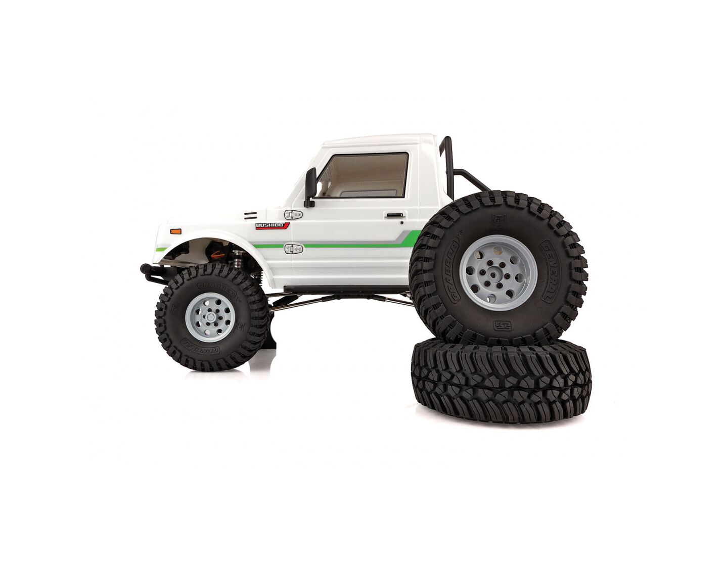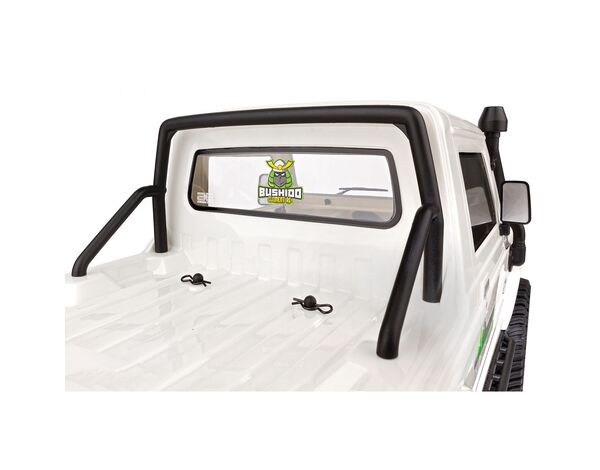 Die einteilige Polykarbonat-Karosserie ist vorlackiert, hat transparente Scheiben und wird mit einem detaillierten Dekorbogen und zusätzlichen Aufklebern geliefert, mit denen der Bushido weiter personalisiert werden kann. Für ein besonders vorbildgetreues Aussehen auf dem Trail sorgen Außenspiegel, Kühlergrill, Scheibenwischer, Ansaugschnorchel, Stoßfänger und Überrollbügel aus Spritzguss.