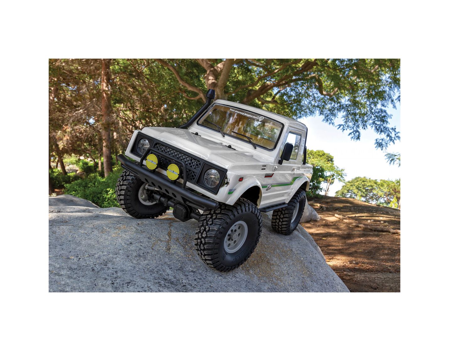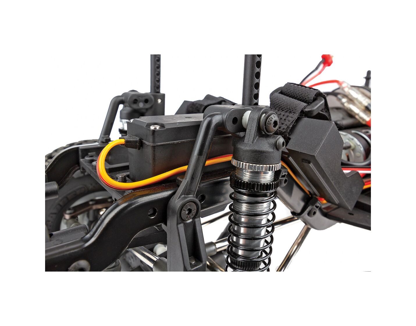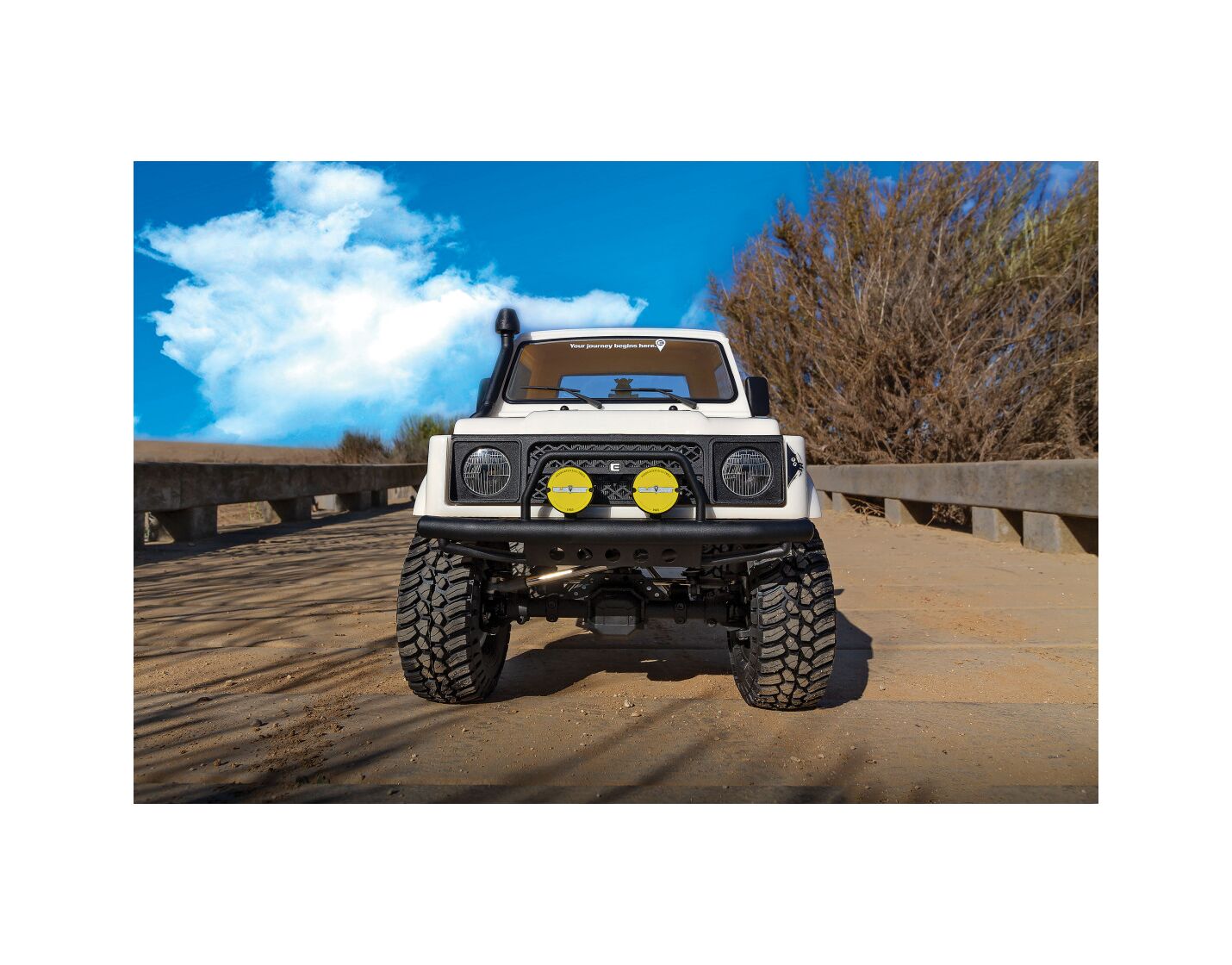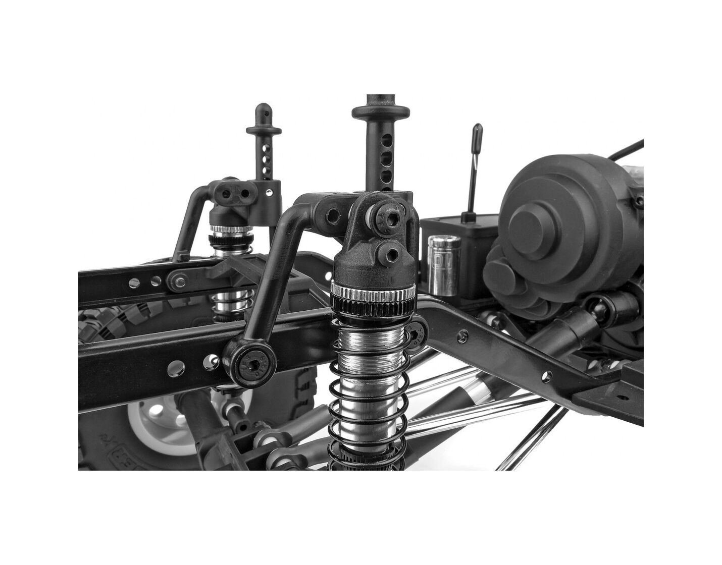 Die einteilige Polykarbonat-Karosserie ist vorlackiert, hat transparente Scheiben und wird mit einem detaillierten Dekorbogen und zusätzlichen Aufklebern geliefert, mit denen der Bushido weiter personalisiert werden kann. Für ein besonders vorbildgetreues Aussehen auf dem Trail sorgen Außenspiegel, Kühlergrill, Scheibenwischer, Ansaugschnorchel, Stoßfänger und Überrollbügel aus Spritzguss.