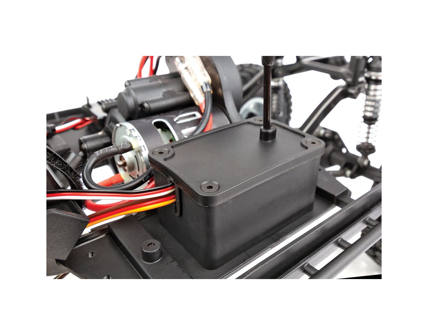 Das Herzstück des Enduro ist das revolutionäre Stealth® X -Getriebe von Associated. Anders als bei anderen Getrieben kann beim Stealth® X -Getriebe die Übersetzung an der Hinterachse unabhängig von der Vorderachse in drei Stufen verändert werden: Ein Standard-Overdrive an der Vorderachse von 5,7 % (im RTR-Modell eingebaut), Option 1 mit einem Verhältnis zwischen Vorder- und Hinterachse von 1:1 (als Zubehör erhältlich), und bei Option 2 ein Overdrive an der Vorderachse von 11,83 % (im Lieferumfang enthalten).